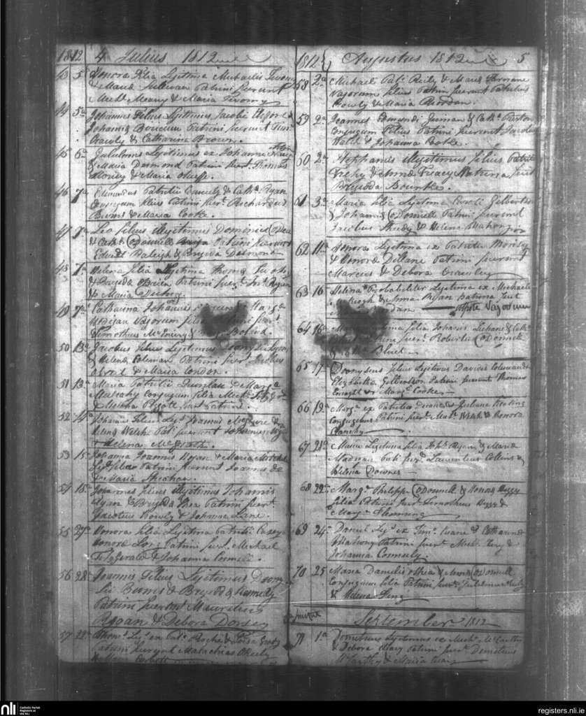 Bulgaden; County of Limerick; Diocese of Limerick. Baptisms, July 1812 to Sep. 1812