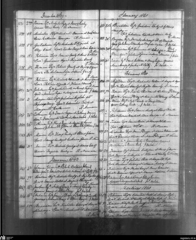 Bulgaden; County of Limerick; Diocese of Limerick. Baptisms, Dec. 1839 to Mar. 1840