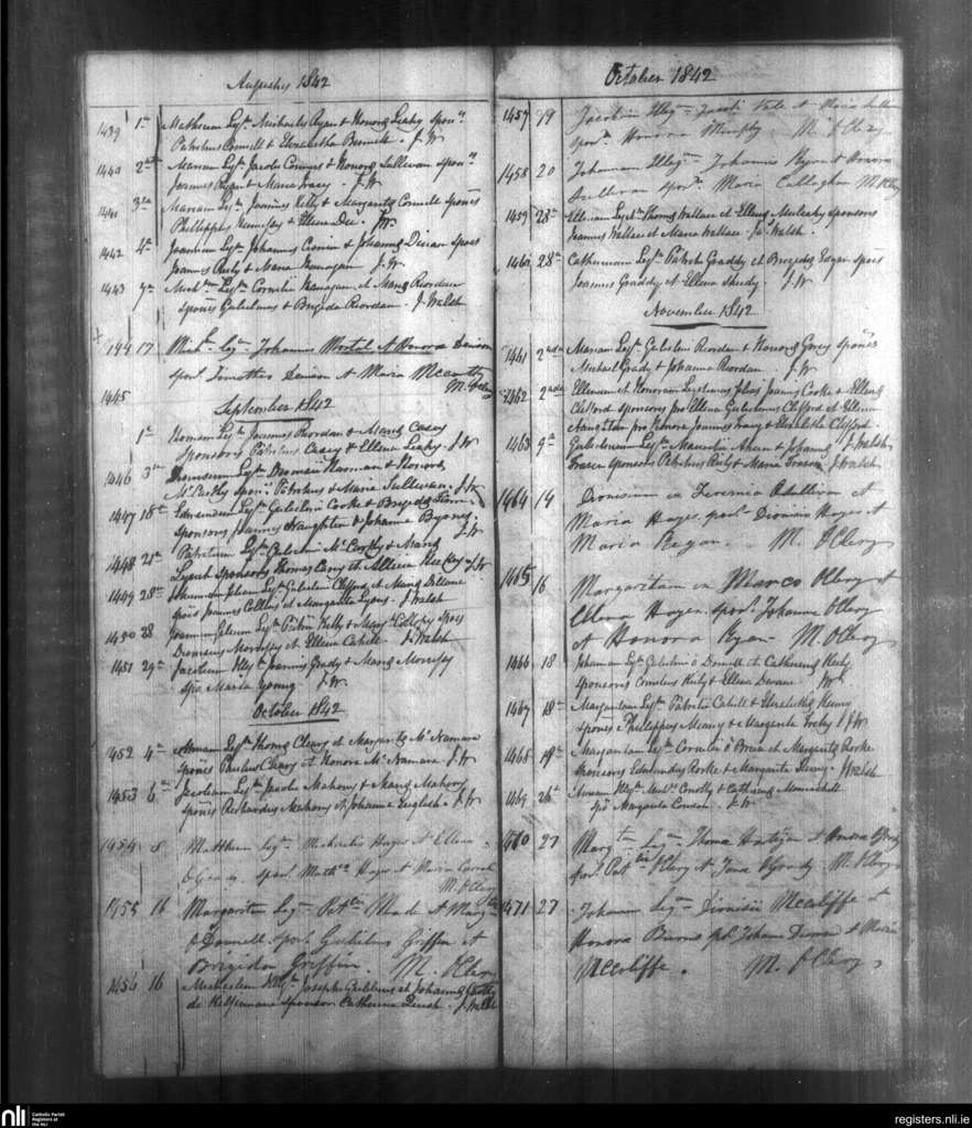 Bulgaden; County of Limerick; Diocese of Limerick. Baptisms, Aug. 1842 to Nov. 1842