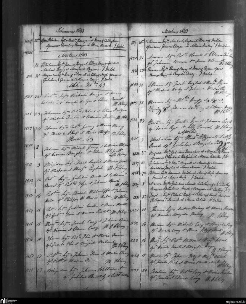 Bulgaden; County of Limerick; Diocese of Limerick. Baptisms, Feb. 1843 to Apr. 1843