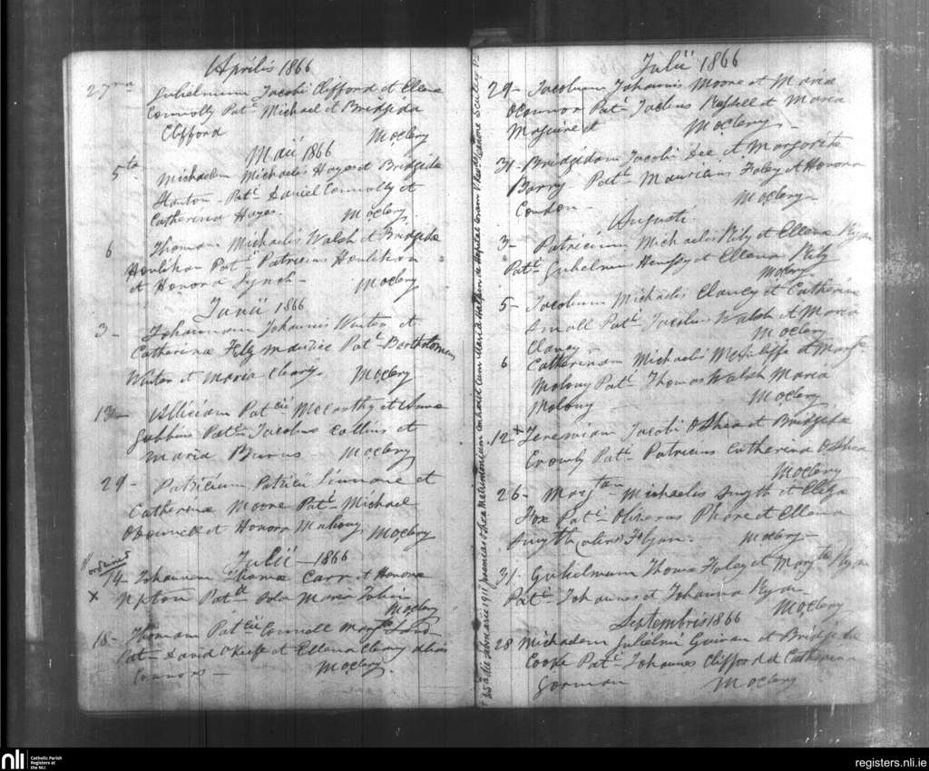 Bulgaden; County of Limerick; Diocese of Limerick. Baptisms, Apr. 1866 to Sep. 1866
