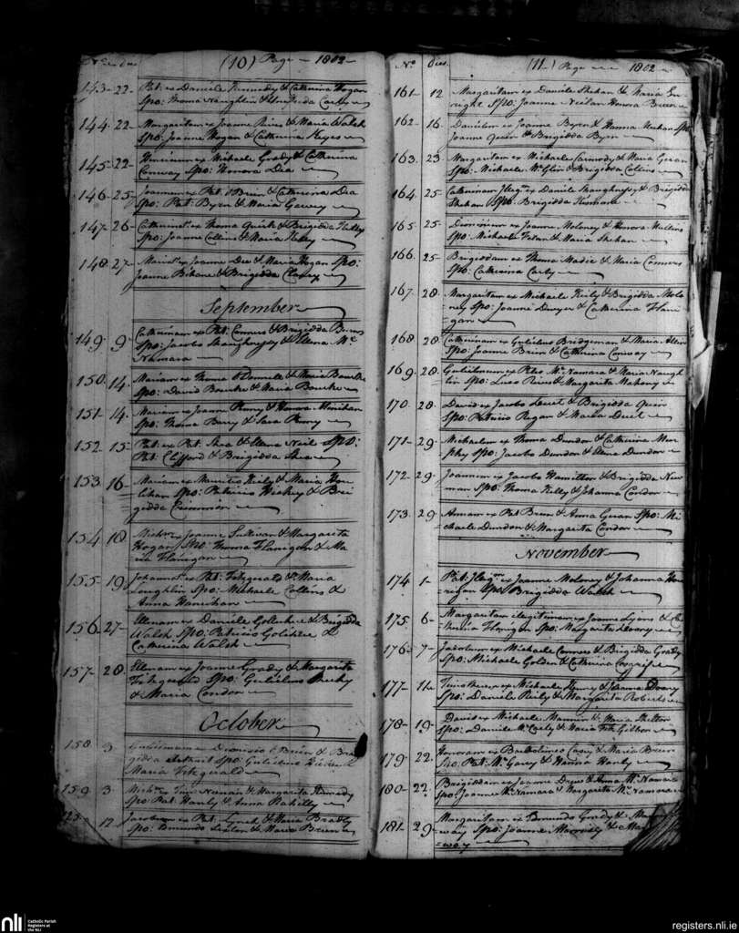 Lurriga; County of Limerick; Diocese of Limerick. Baptisms, Aug. 1802 to Nov. 1802