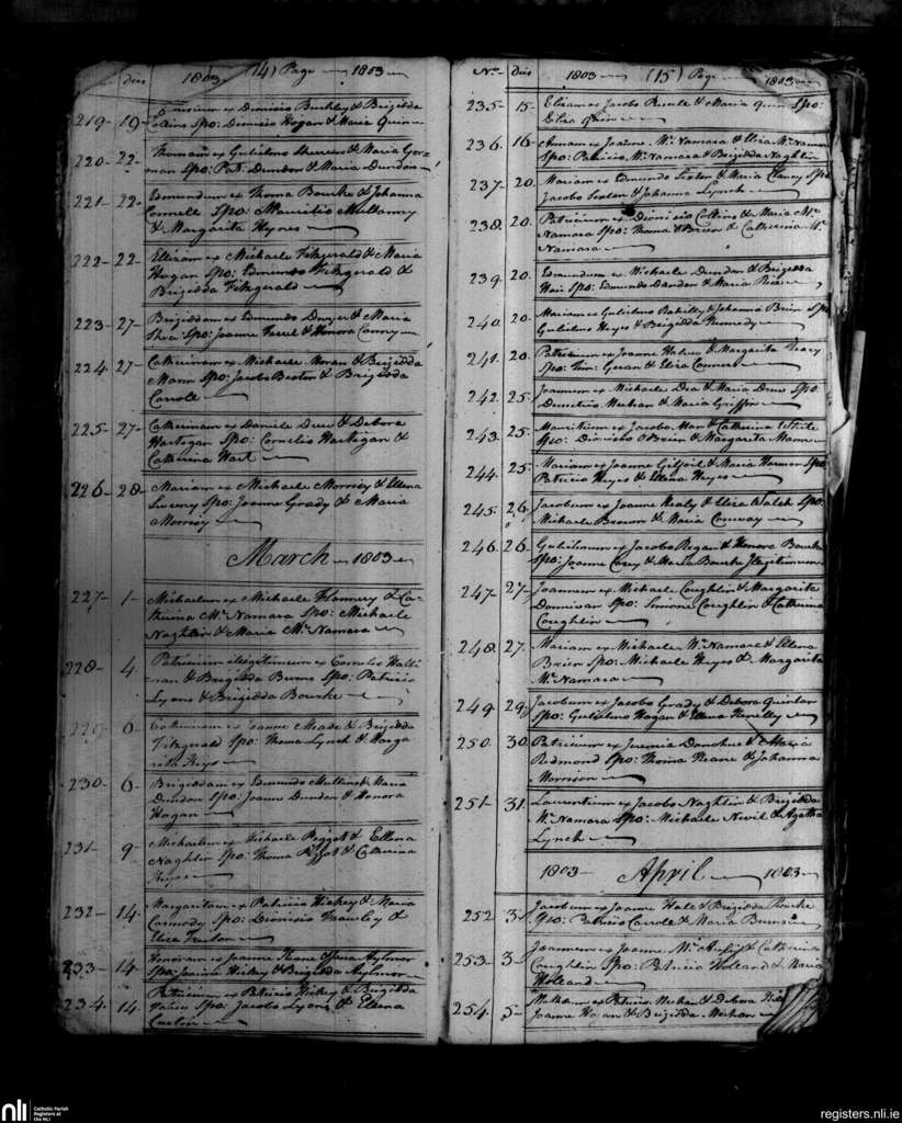 Lurriga; County of Limerick; Diocese of Limerick. Baptisms, Feb. 1803 to Apr. 1803