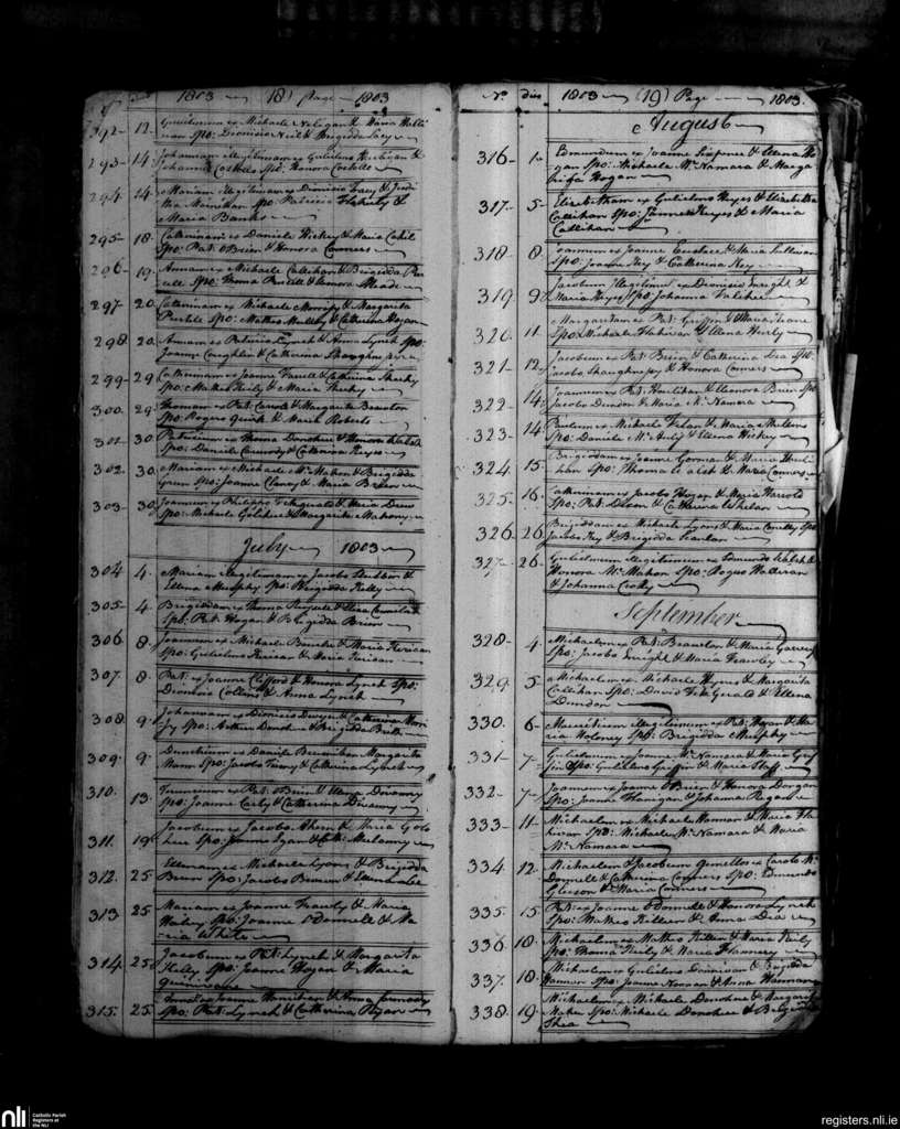 Lurriga; County of Limerick; Diocese of Limerick. Baptisms, June 1803 to Sep. 1803