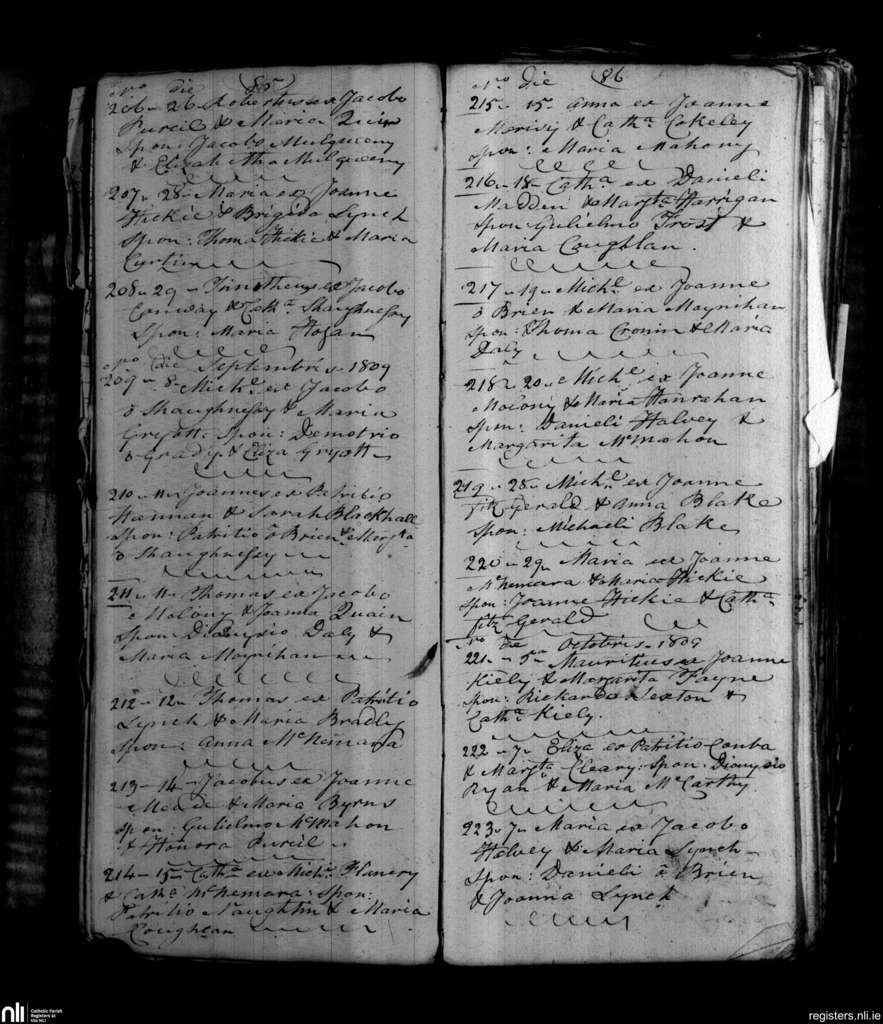 Lurriga; County of Limerick; Diocese of Limerick. Baptisms, Aug. 1809 to Oct. 1809
