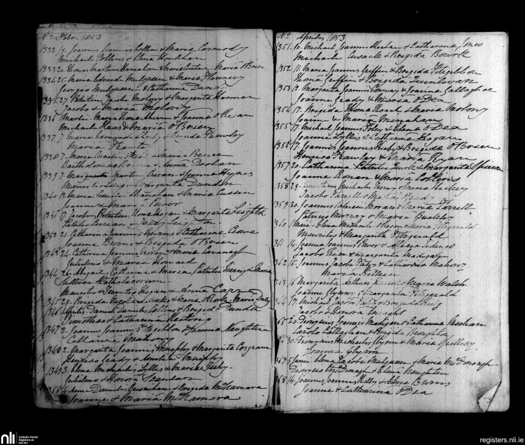 Lurriga; County of Limerick; Diocese of Limerick. Baptisms, Feb. 1853 to June 1853