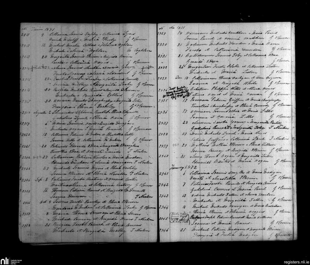 Lurriga; County of Limerick; Diocese of Limerick. Baptisms, June 1871 to Jan. 1872