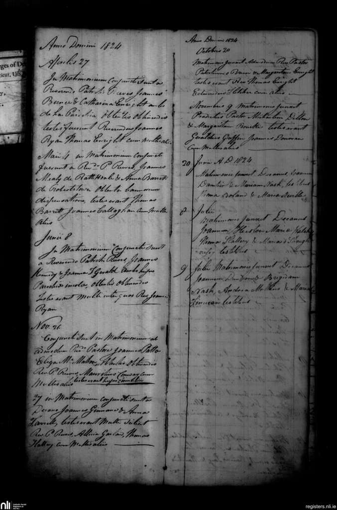 Shanagolden; County of Limerick; Diocese of Limerick. Marriages, Apr. 1824 to Nov. 1824
