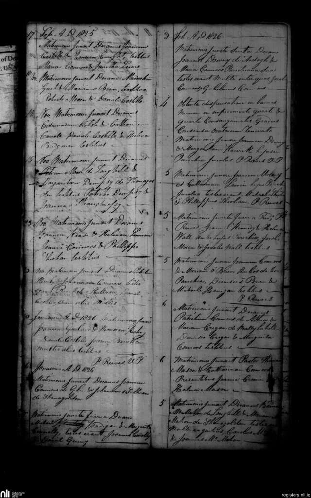 Shanagolden; County of Limerick; Diocese of Limerick. Marriages, Sep. 1825 to Feb. 1826