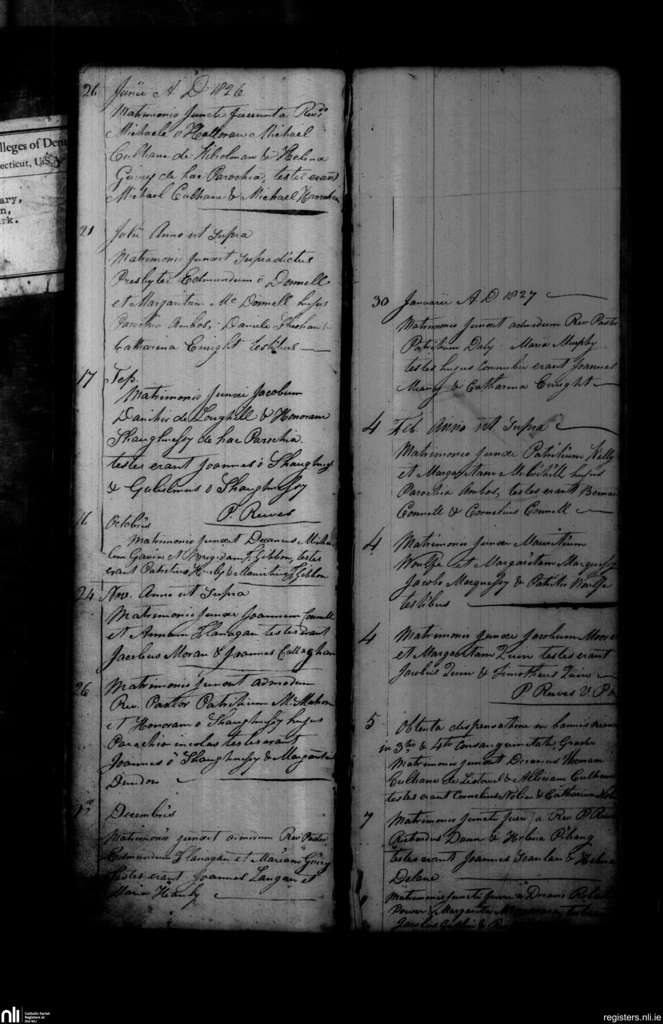 Shanagolden; County of Limerick; Diocese of Limerick. Marriages, June 1826 to Feb. 1827