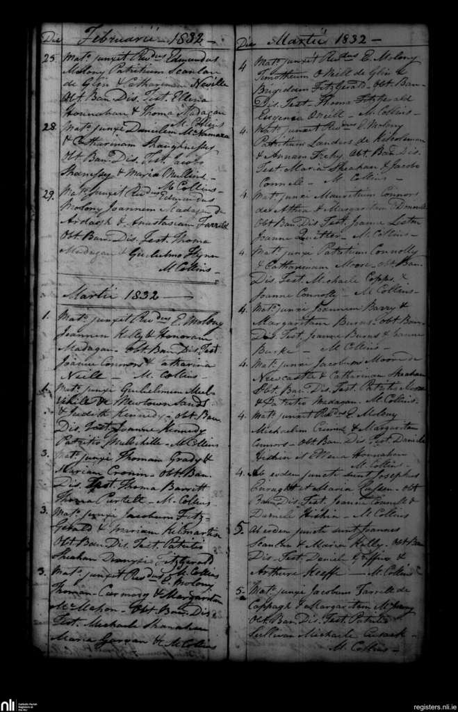 Shanagolden; County of Limerick; Diocese of Limerick. Marriages, Feb. 1832 to Mar. 1832