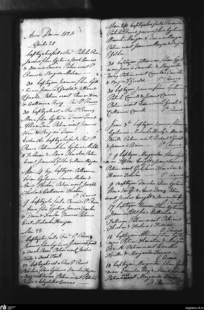 Shanagolden; County of Limerick; Diocese of Limerick. Baptisms, Apr. 1824 to June 1824