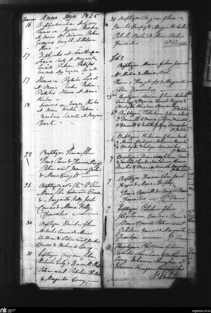 Shanagolden; County of Limerick; Diocese of Limerick. Baptisms, Jan. 1825 to Feb. 1825