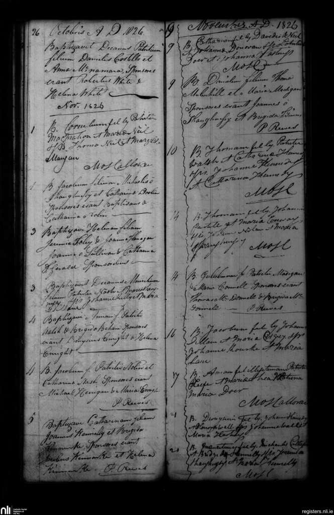 Shanagolden; County of Limerick; Diocese of Limerick. Baptisms, Oct. 1826 to Nov. 1826