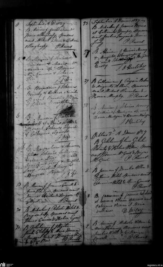 Shanagolden; County of Limerick; Diocese of Limerick. Baptisms, Sep. 1827 to Oct. 1827