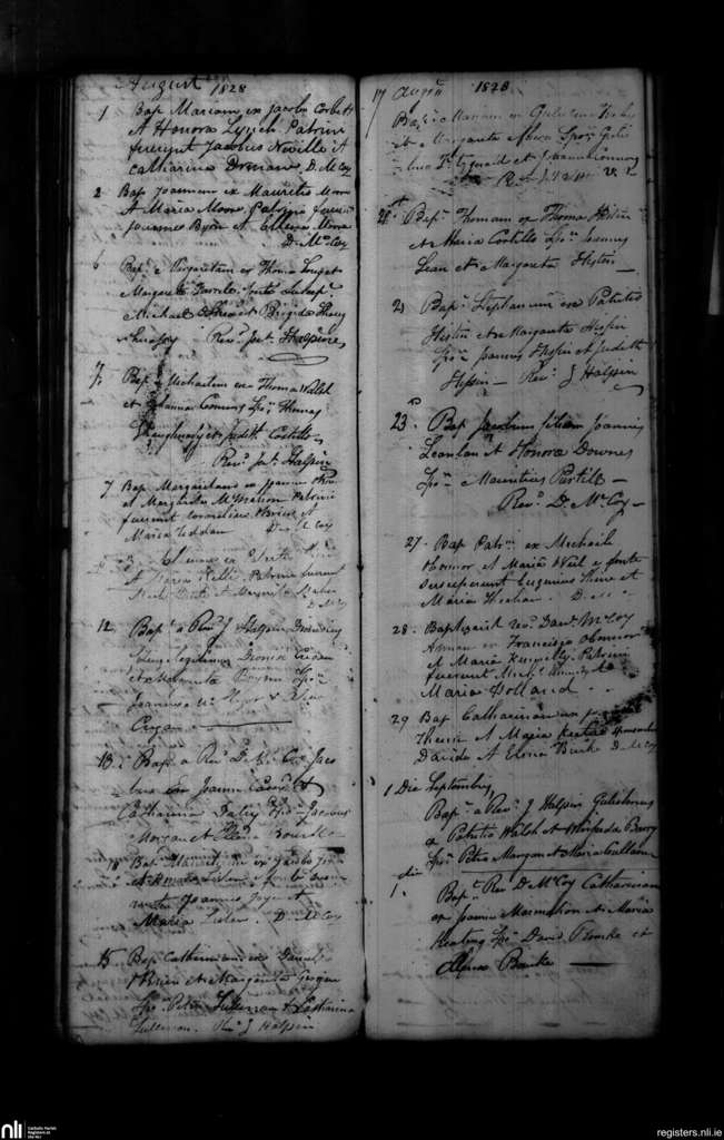 Shanagolden; County of Limerick; Diocese of Limerick. Baptisms, Aug. 1828 to Sep. 1828