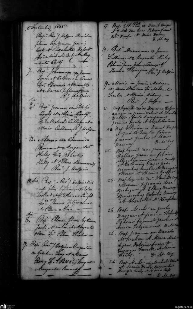 Shanagolden; County of Limerick; Diocese of Limerick. Baptisms, Sep. 1828
