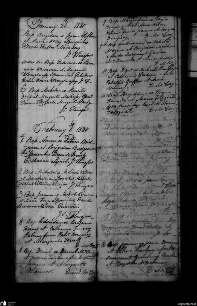 Shanagolden; County of Limerick; Diocese of Limerick. Baptisms, Jan. 1830 to Feb. 1830