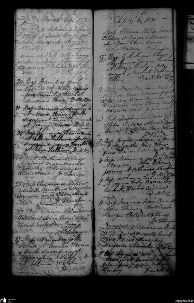Shanagolden; County of Limerick; Diocese of Limerick. Baptisms, Mar. 1830 to Apr. 1830