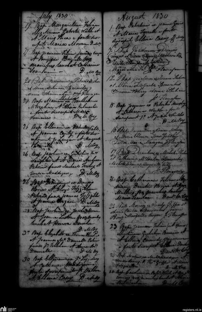 Shanagolden; County of Limerick; Diocese of Limerick. Baptisms, July 1830 to Aug. 1830