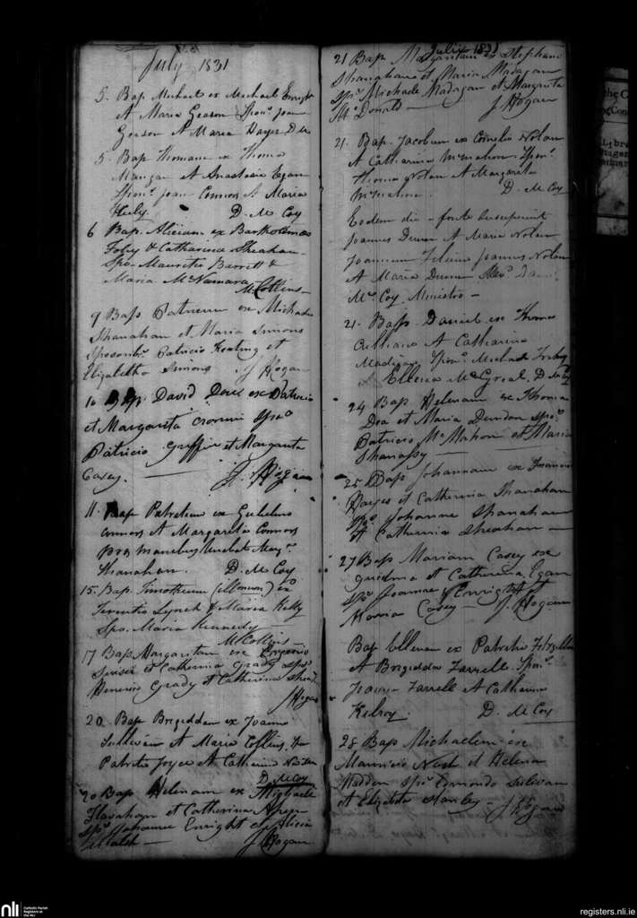 Shanagolden; County of Limerick; Diocese of Limerick. Baptisms, July 1831