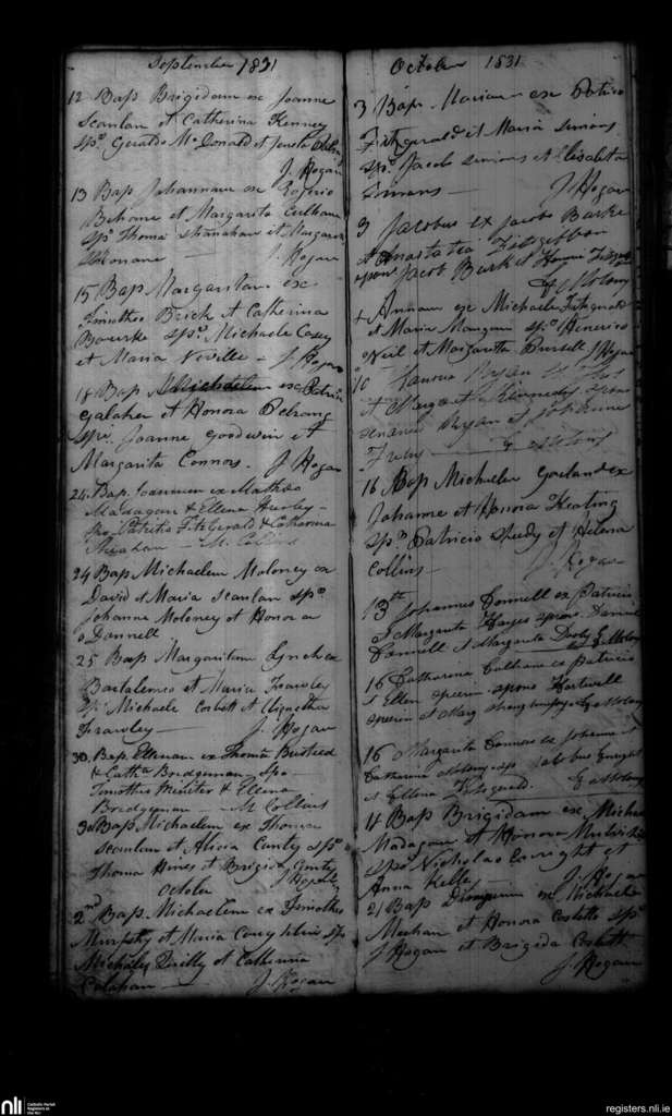 Shanagolden; County of Limerick; Diocese of Limerick. Baptisms, Sep. 1831 to Oct. 1831