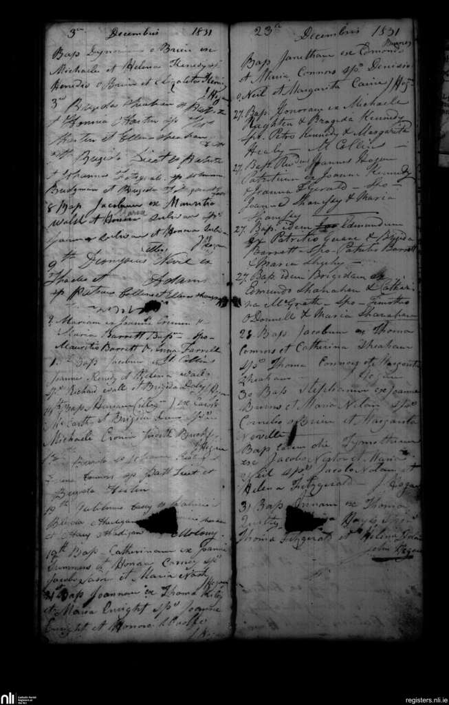 Shanagolden; County of Limerick; Diocese of Limerick. Baptisms, Dec. 1831