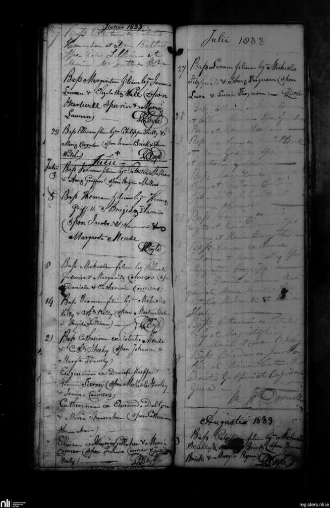 Shanagolden; County of Limerick; Diocese of Limerick. Baptisms, June 1833 to Aug. 1833