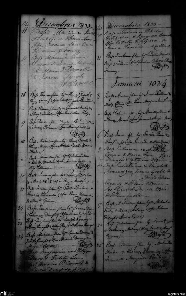 Shanagolden; County of Limerick; Diocese of Limerick. Baptisms, Dec. 1833 to Jan. 1834