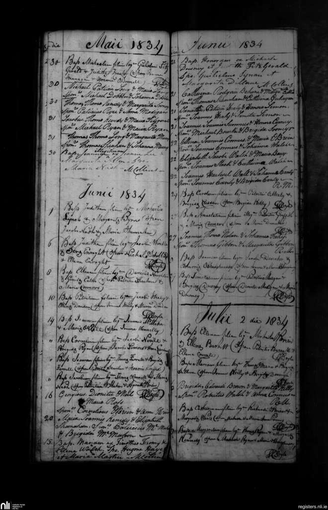 Shanagolden; County of Limerick; Diocese of Limerick. Baptisms, May 1834 to July 1834