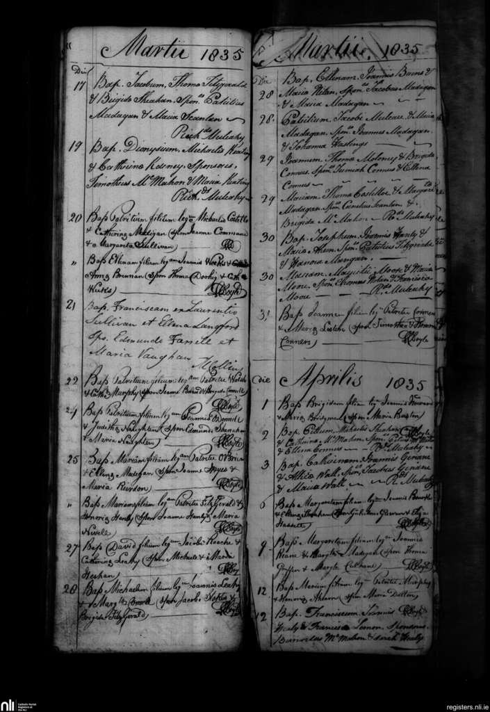 Shanagolden; County of Limerick; Diocese of Limerick. Baptisms, Mar. 1835 to Apr. 1835