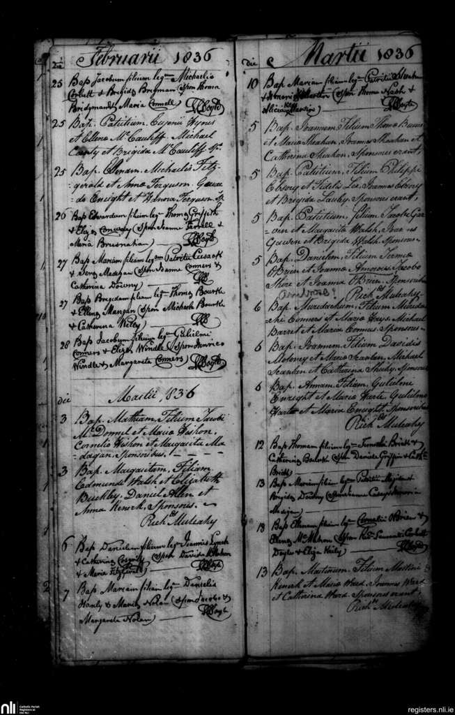 Shanagolden; County of Limerick; Diocese of Limerick. Baptisms, Feb. 1836 to Mar. 1836
