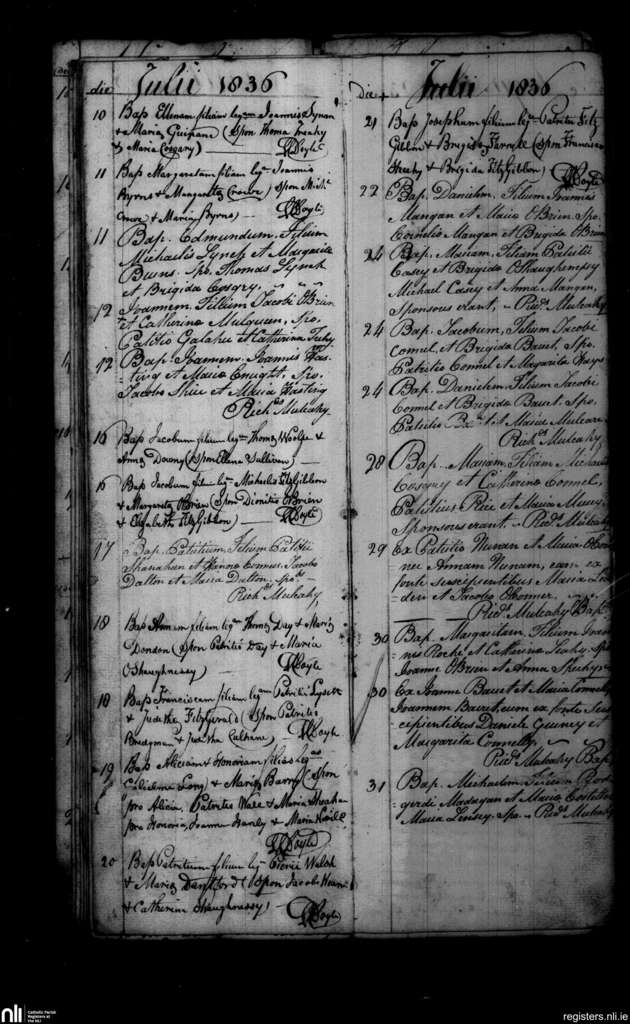 Shanagolden; County of Limerick; Diocese of Limerick. Baptisms, July 1836
