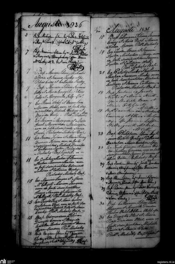 Shanagolden; County of Limerick; Diocese of Limerick. Baptisms, Aug. 1836