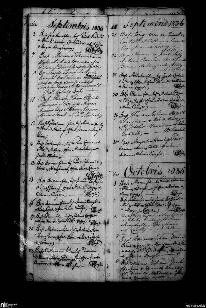 Shanagolden; County of Limerick; Diocese of Limerick. Baptisms, Sep. 1836 to Oct. 1836