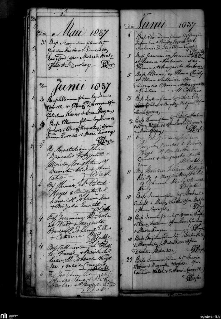 Shanagolden; County of Limerick; Diocese of Limerick. Baptisms, May 1837 to June 1837