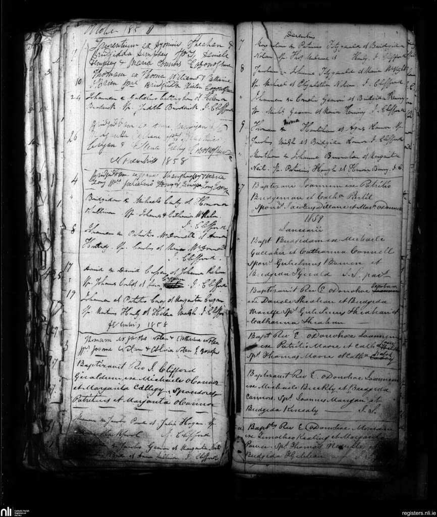 Shanagolden; County of Limerick; Diocese of Limerick. Baptisms, Oct. 1858 to Jan. 1859