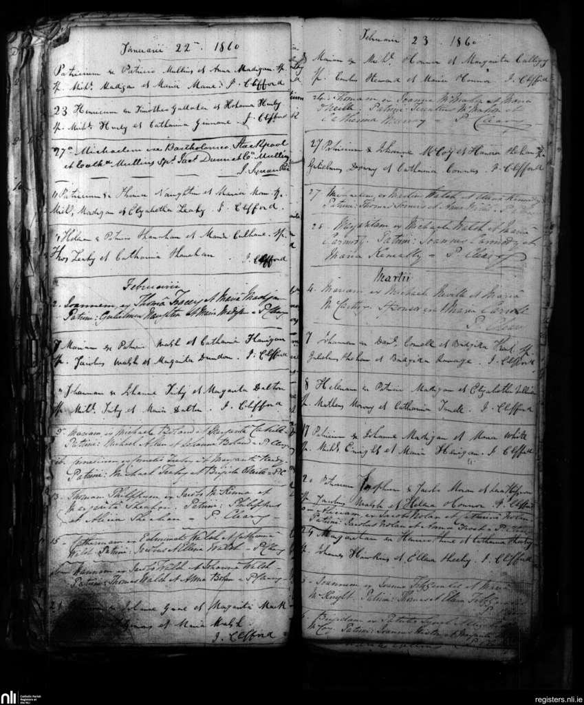 Shanagolden; County of Limerick; Diocese of Limerick. Baptisms, Jan. 1860 to Mar. 1860