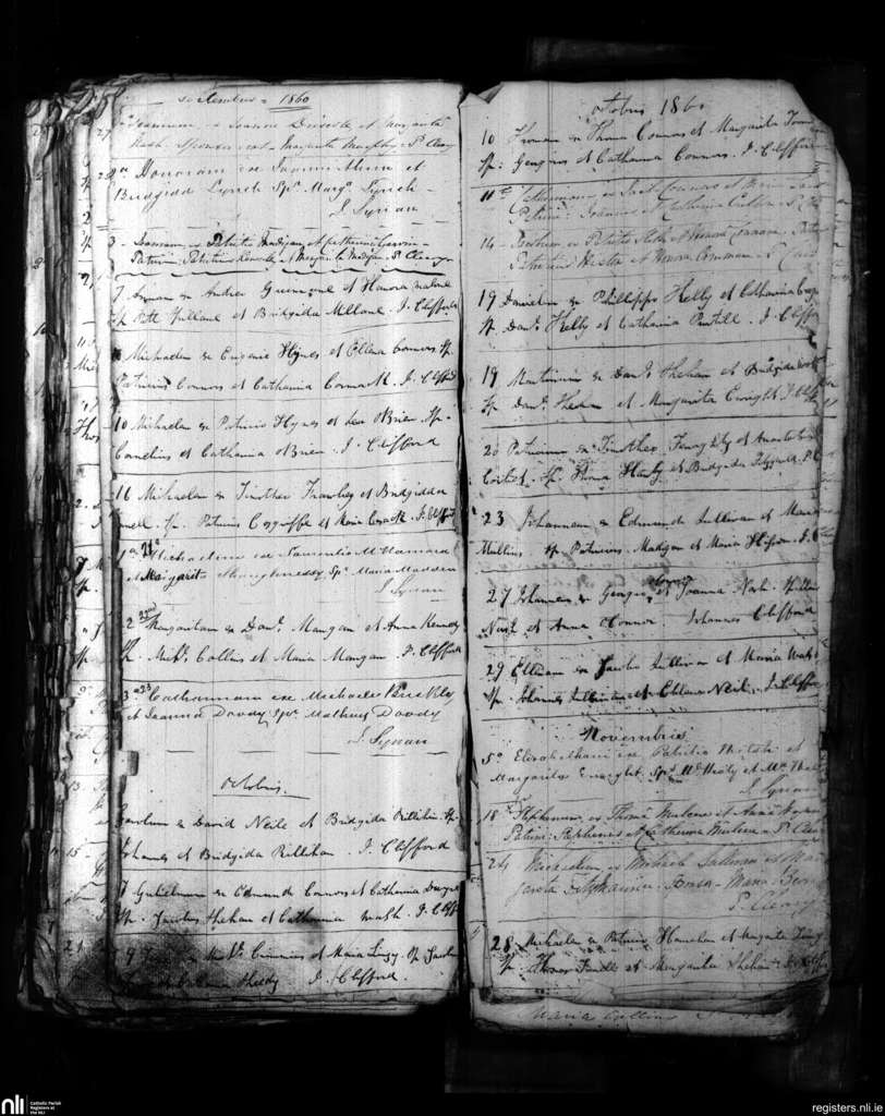 Shanagolden; County of Limerick; Diocese of Limerick. Baptisms, Sep. 1860 to Nov. 1860