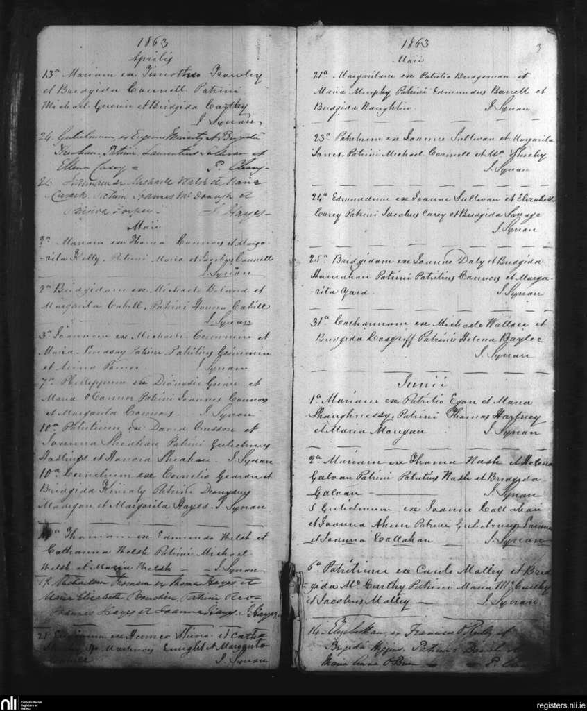 Shanagolden; County of Limerick; Diocese of Limerick. Baptisms, Apr. 1863 to June 1863