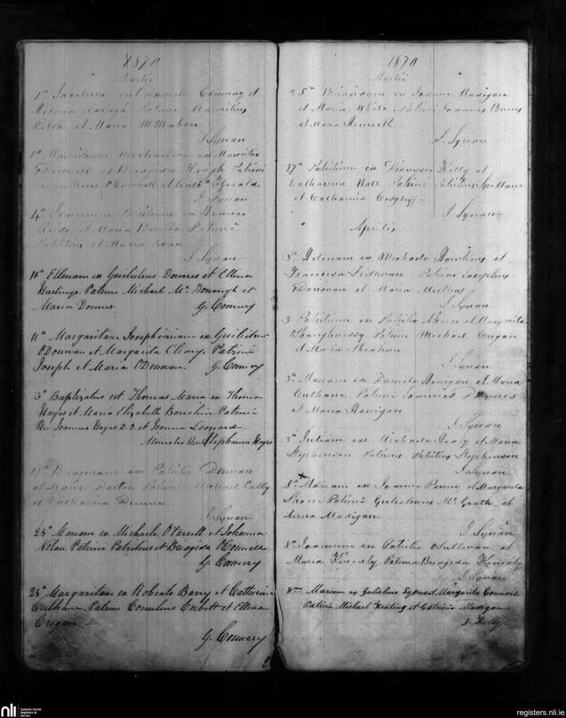 Shanagolden; County of Limerick; Diocese of Limerick. Baptisms, Mar. 1870 to Apr. 1870