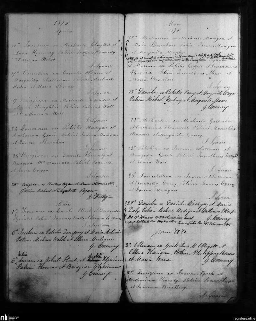 Shanagolden; County of Limerick; Diocese of Limerick. Baptisms, Apr. 1870 to June 1870