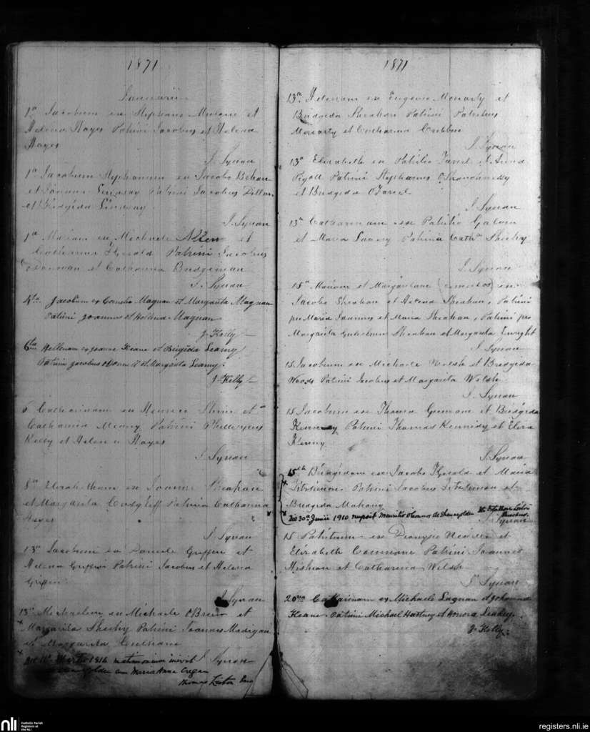 Shanagolden; County of Limerick; Diocese of Limerick. Baptisms, Jan. 1871