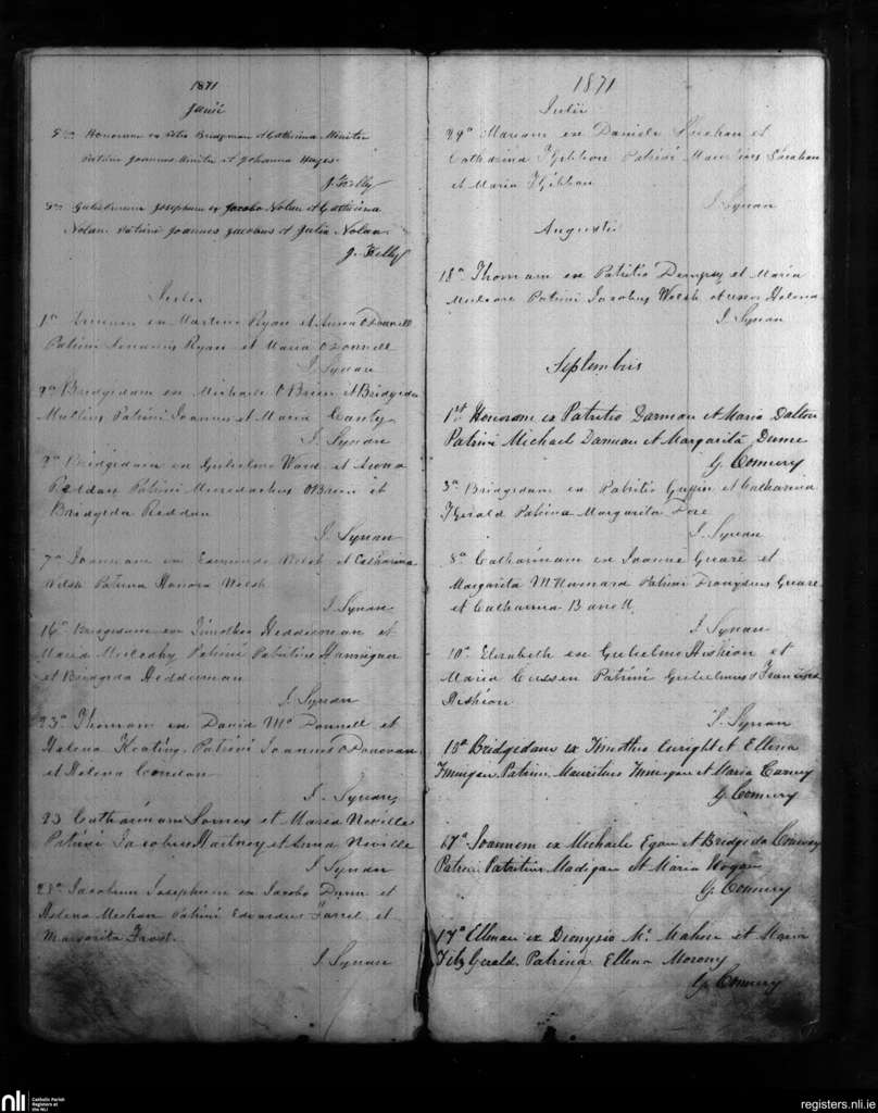Shanagolden; County of Limerick; Diocese of Limerick. Baptisms, June 1871 to Sep. 1871