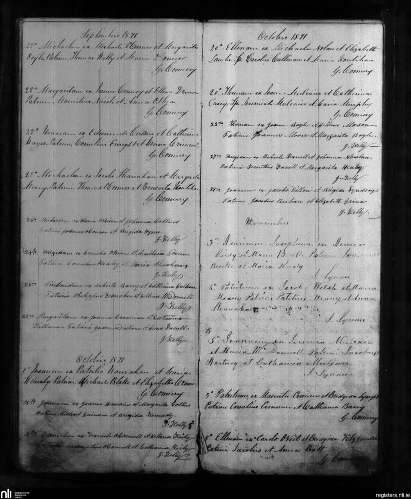 Shanagolden; County of Limerick; Diocese of Limerick. Baptisms, Sep. 1871 to Nov. 1871