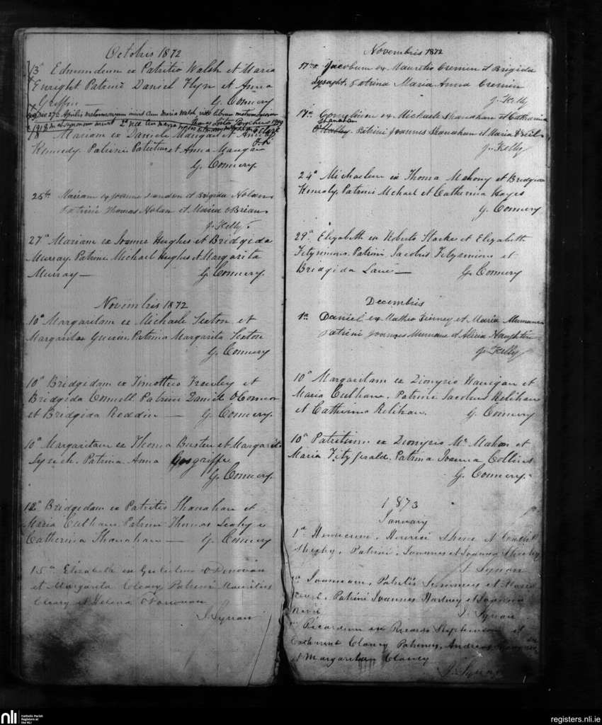 Shanagolden; County of Limerick; Diocese of Limerick. Baptisms, Oct. 1872 to Jan. 1873
