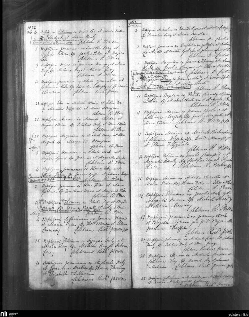 Glenroe; County of Limerick; Diocese of Limerick. Baptisms, Feb. 1872 to June 1872