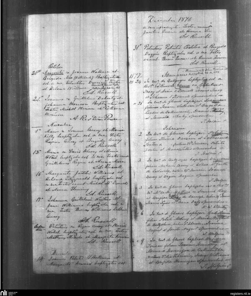 Glenroe; County of Limerick; Diocese of Limerick. Baptisms, Oct. 1876 to Feb. 1877