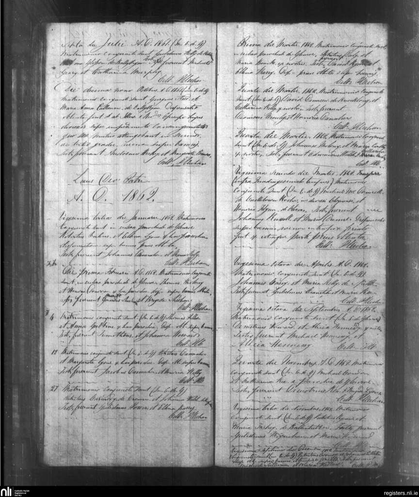 Glenroe; County of Limerick; Diocese of Limerick. Marriages, July 1861 to Dec. 1862