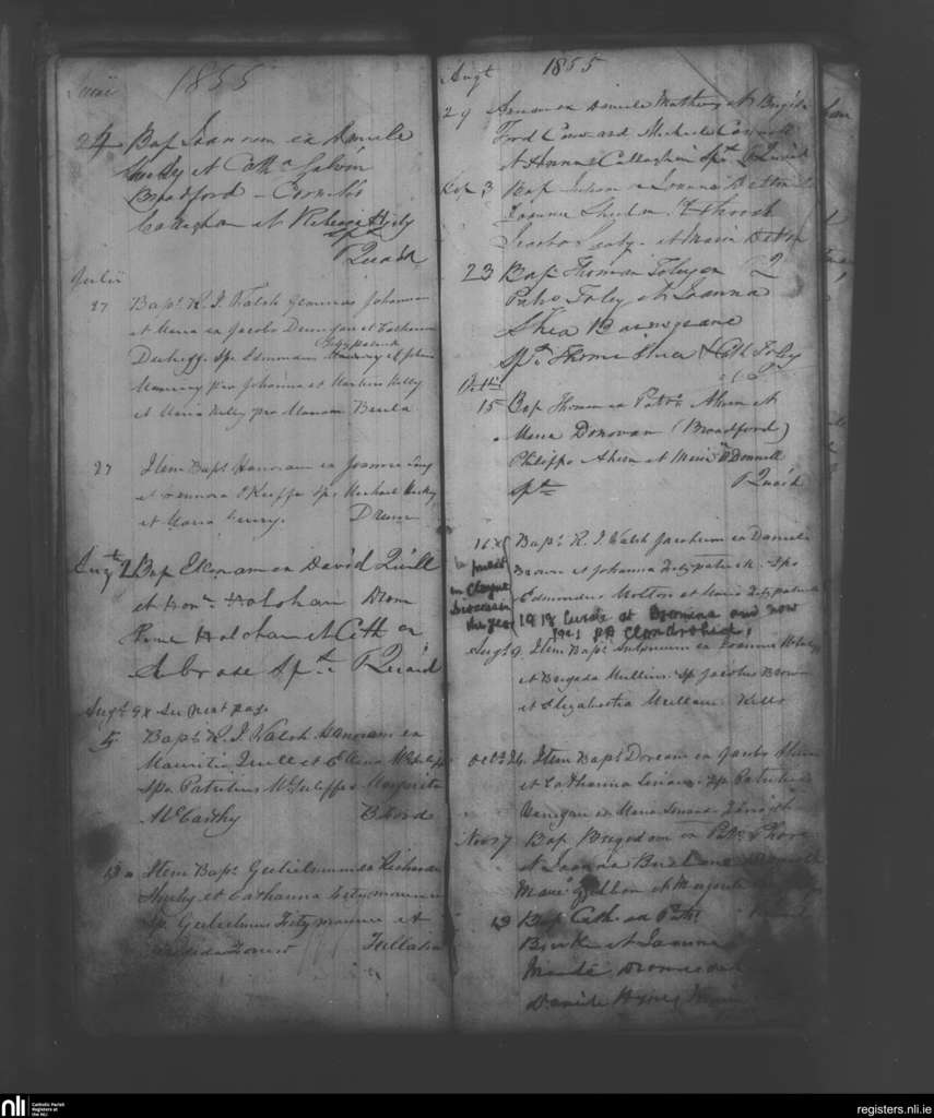 Drumcollogher; County of Limerick; Diocese of Limerick. Baptisms, June 1855 to Nov. 1855